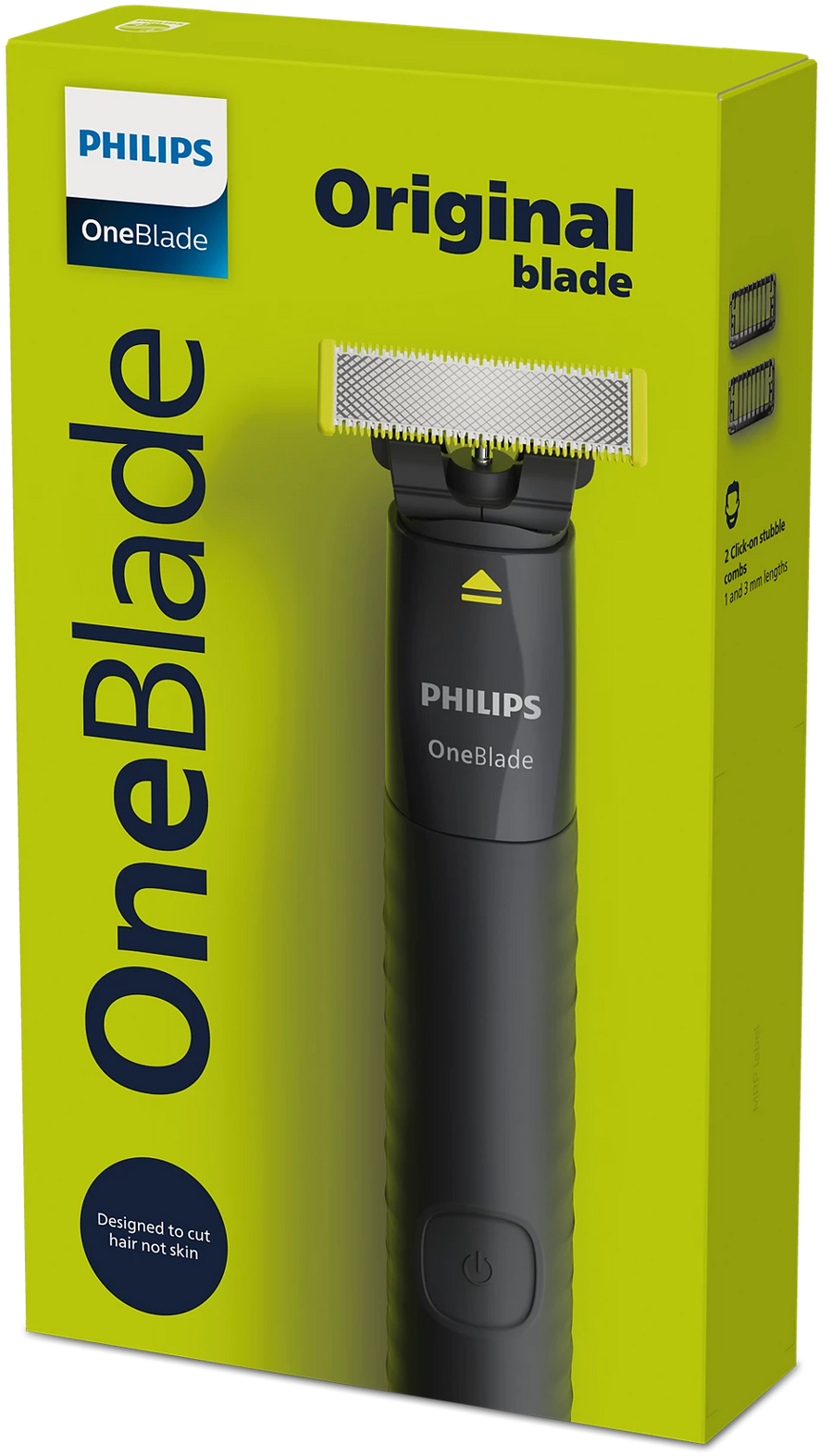 Includes 1 original blade and 2 click-on stubble combs for 1 mm and 3 mm trimming options.
