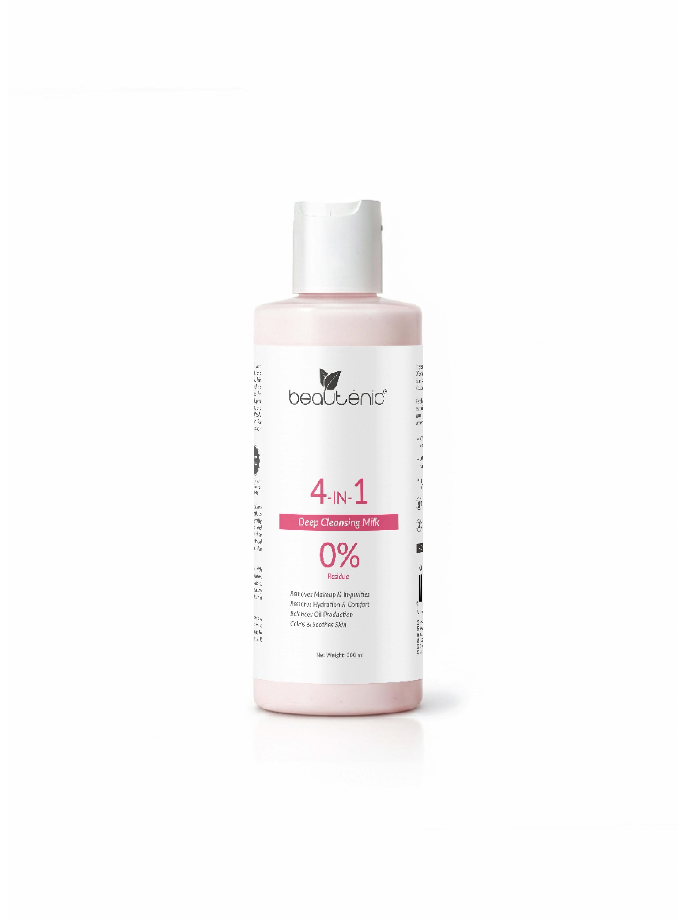 Beautenic Deep Cleansing Milk is a gentle 4-in-1 creamy cleanser formulated to remove makeup, dirt, sunscreen, and daily impurities while maintaining skin hydration and comfort. This non-foaming formula cleanses effectively without disrupting the skin’s natural moisture barrier, leaving your skin soft, balanced, and refreshed.