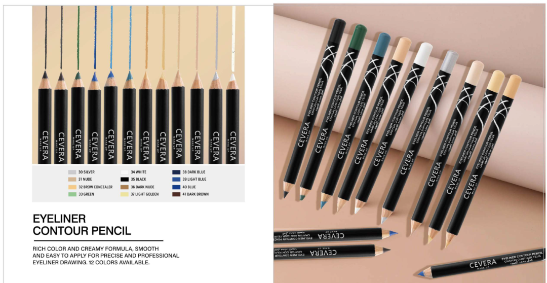 Cevera Eye Contour Pencil offers a rich color payoff and a creamy texture that glides on smoothly for precise, professional eyeliner application. Available in 12 vibrant shades, it allows for versatile looks, from subtle definition to bold accents, ensuring expert-level results every time.