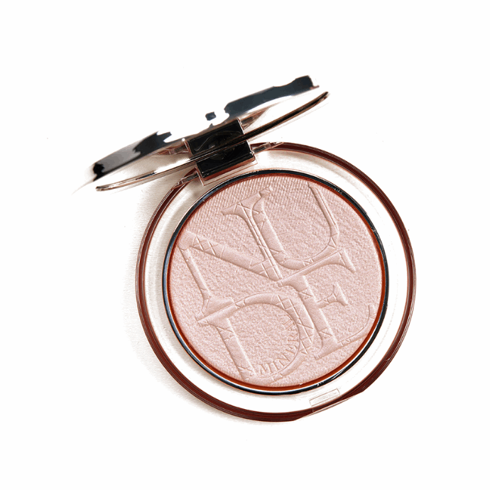 Dior Pink Glow (002) DiorSkin Nude Luminizer is a very light pink with warmer undertones and a metallic sheen. This shade had a slightly stronger sheen compared to others in the formula, though most can be used more sheerly for a less luminous finish or built up for greater shine. This highlighter was intensely pigmented with a smooth, blendable consistency that was firmly pressed in the pan, so there wasn't any powderiness, but it yielded well to my brushes for good product pick up . The powder applied evenly to bare skin and blended out with almost no effort at all and didn't seem to accentuate my skin's natural texture. The color lasted well for eight and a half hours on me before it started to fade a bit.