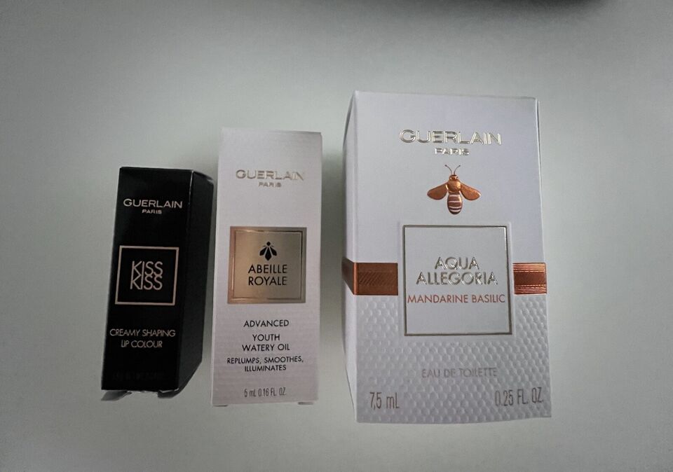 Guerlain Travil Set Abellie Lipstick+Kiss Lip Creme+Aqua Allegoria EDT 7.5Ml+Bag