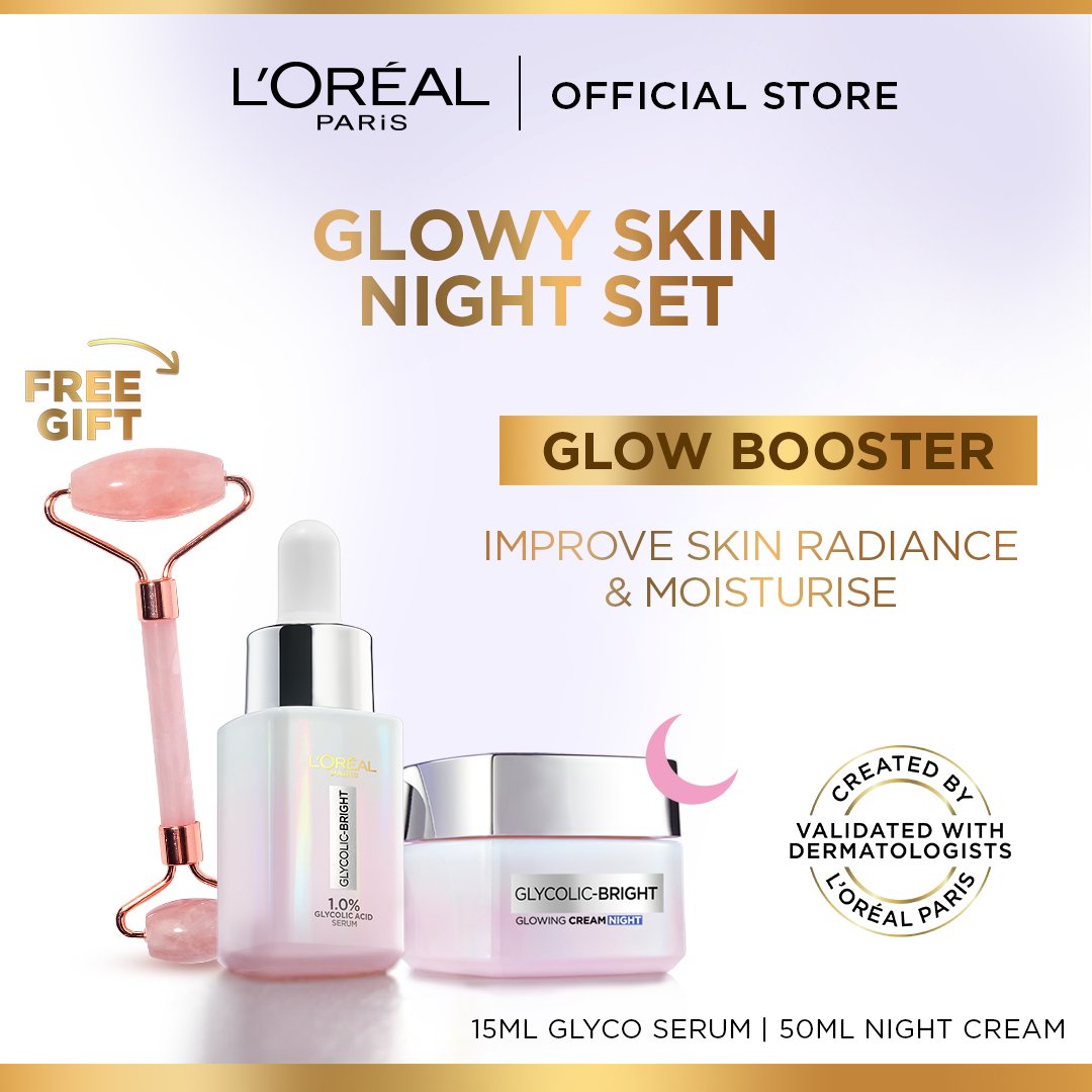 Loreal Set Instant Glowing Serum 15Ml+Glowing Night Cream 50Ml+Roller